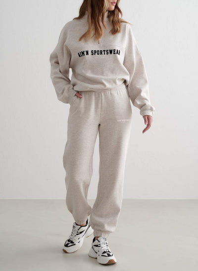 Beige Melange Varsity Sweat Set